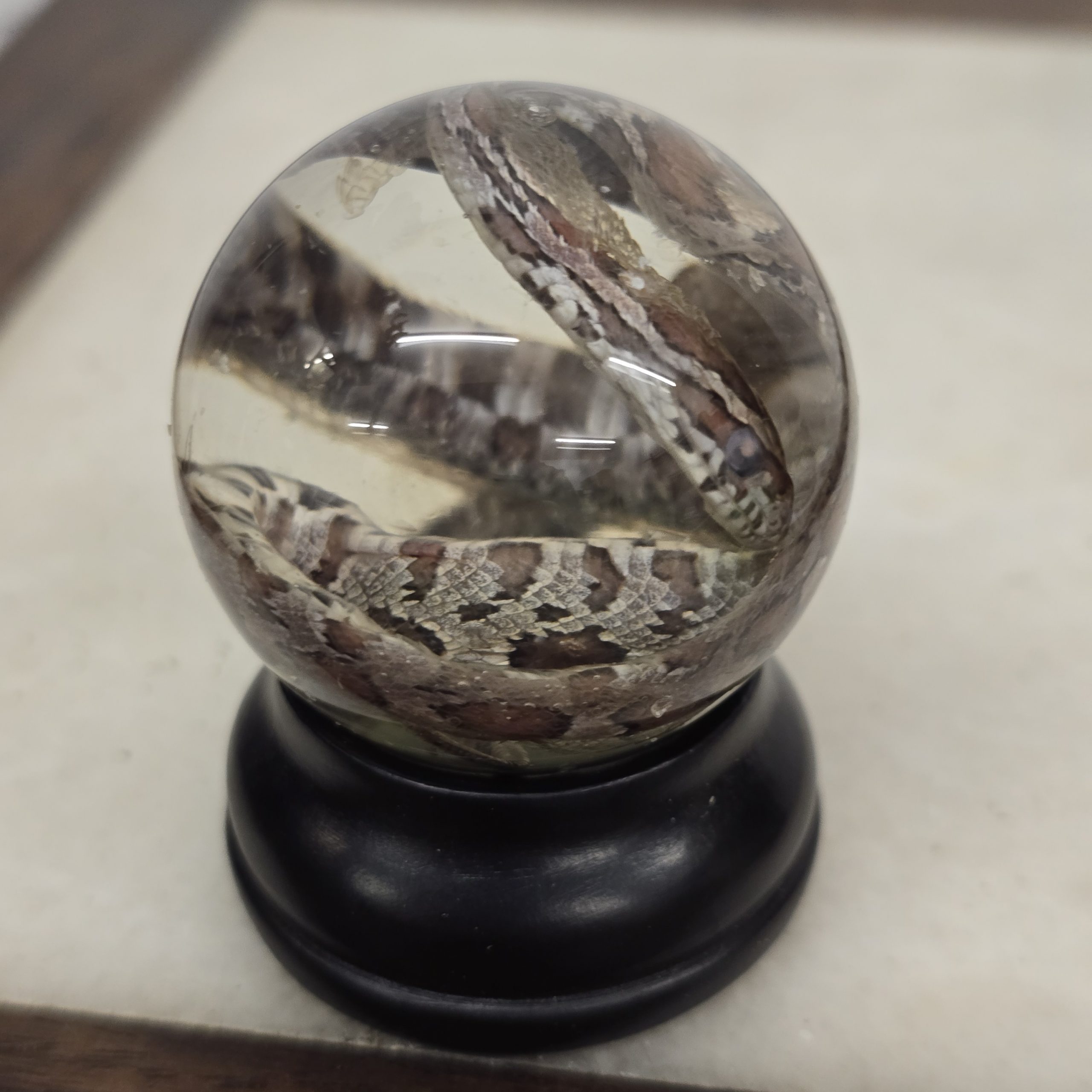 The specimen is articulated within a 40mm Glass Globe in which it will ship with Full Alcohol, so no need to go purchase your own.