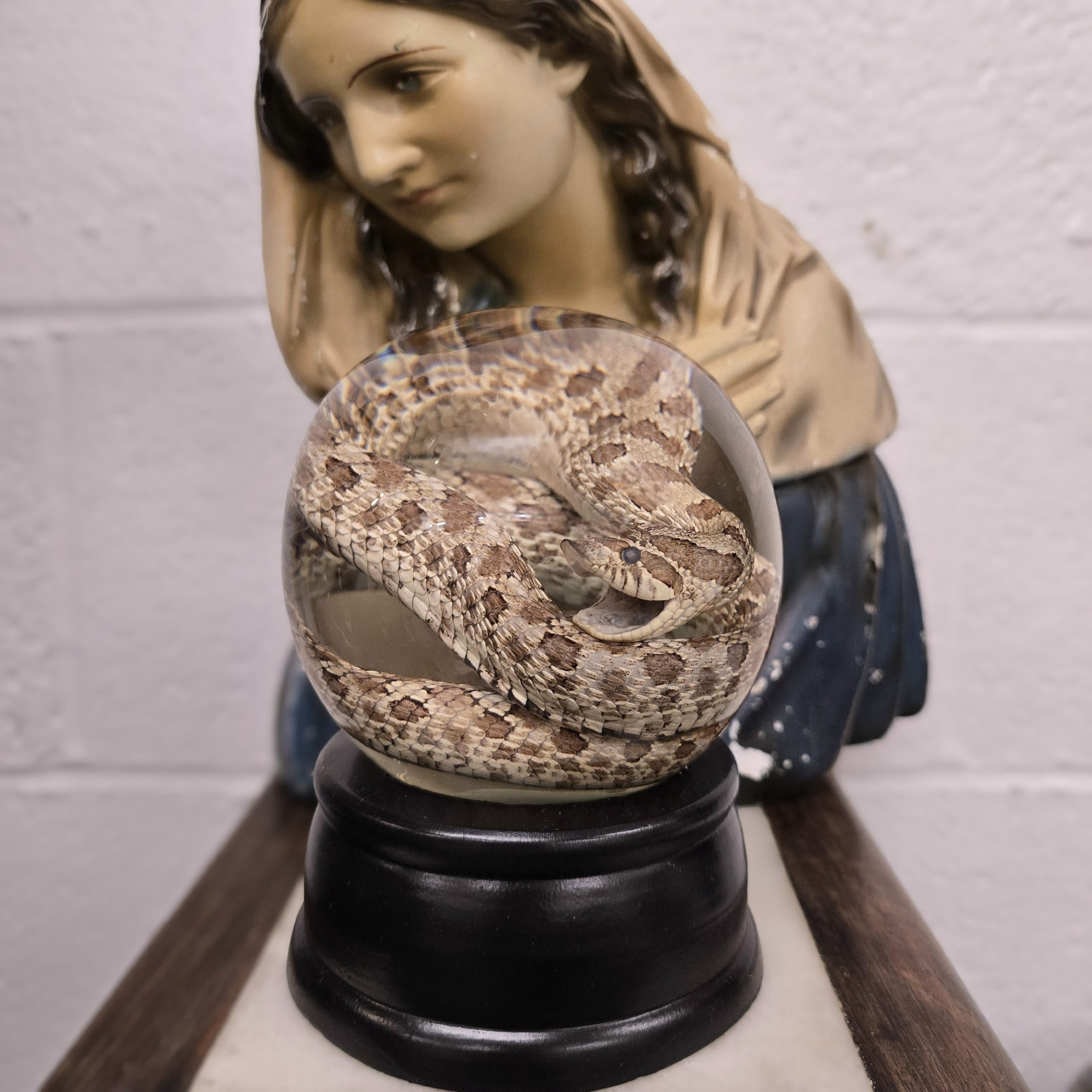 The specimen is articulated within a 120mm Glass Globe in which it will ship with Full Alcohol, so no need to go purchase your own.