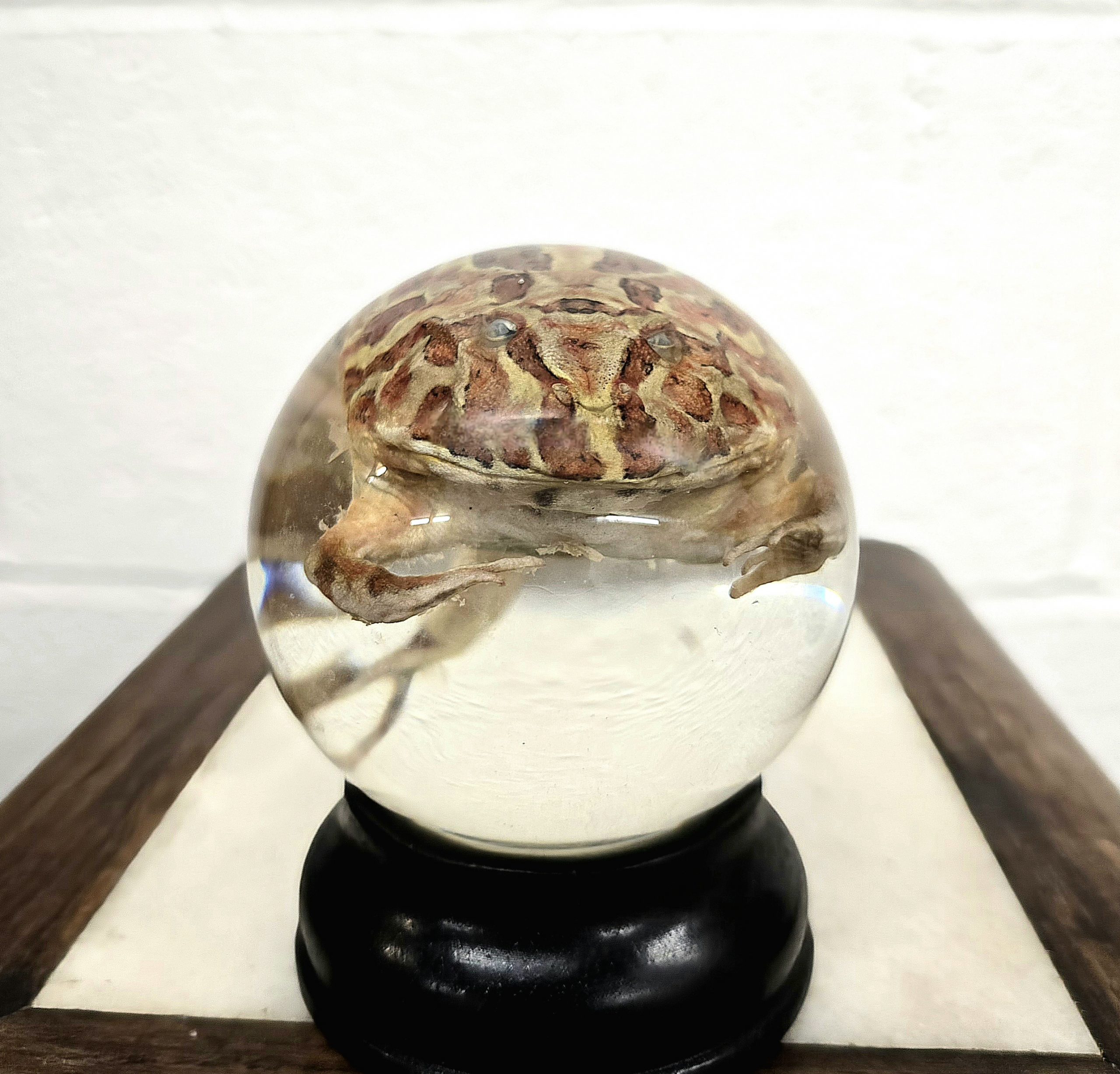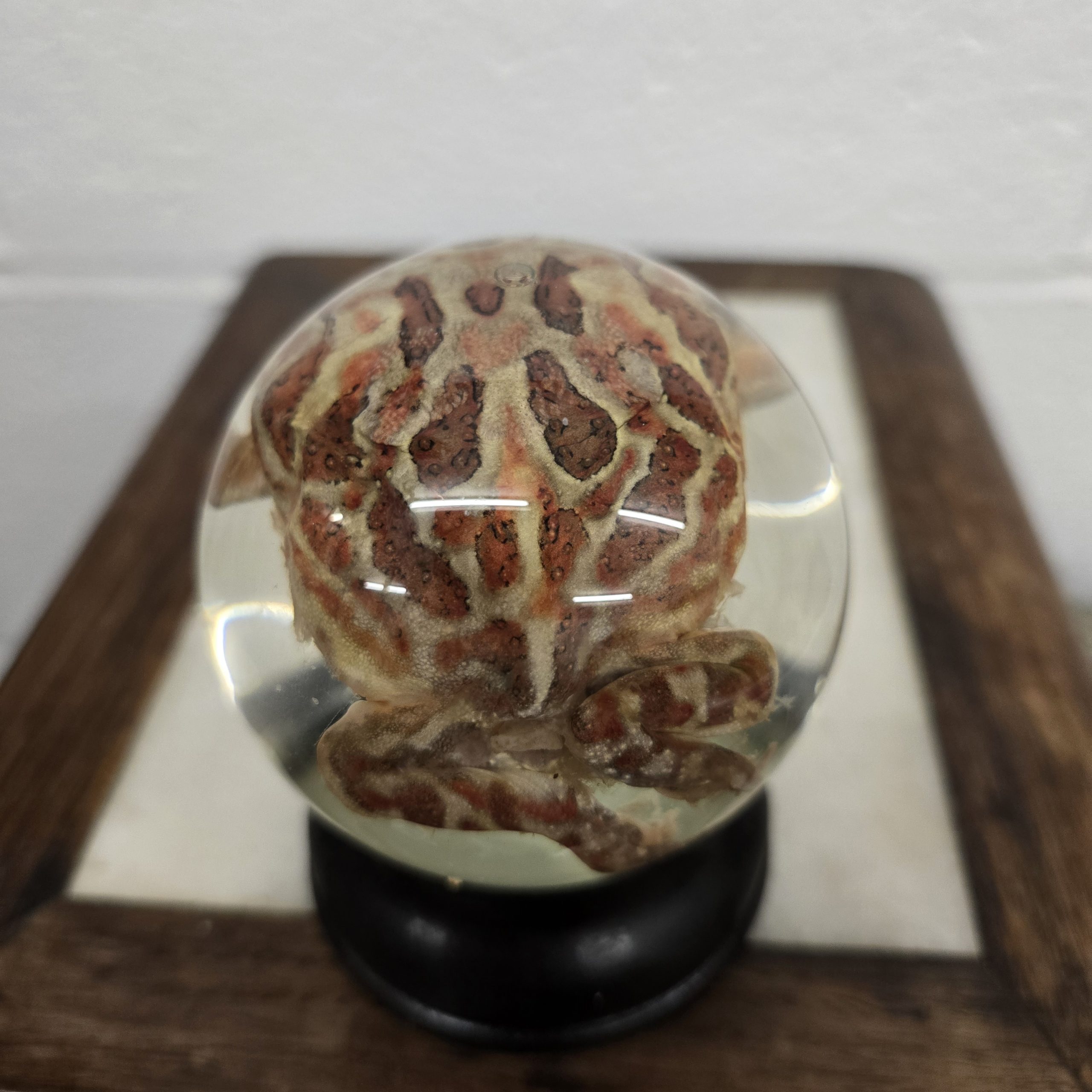 The specimen is articulated within a 100mm Glass Globe in which it will ship with Full Alcohol, so no need to go purchase your own.