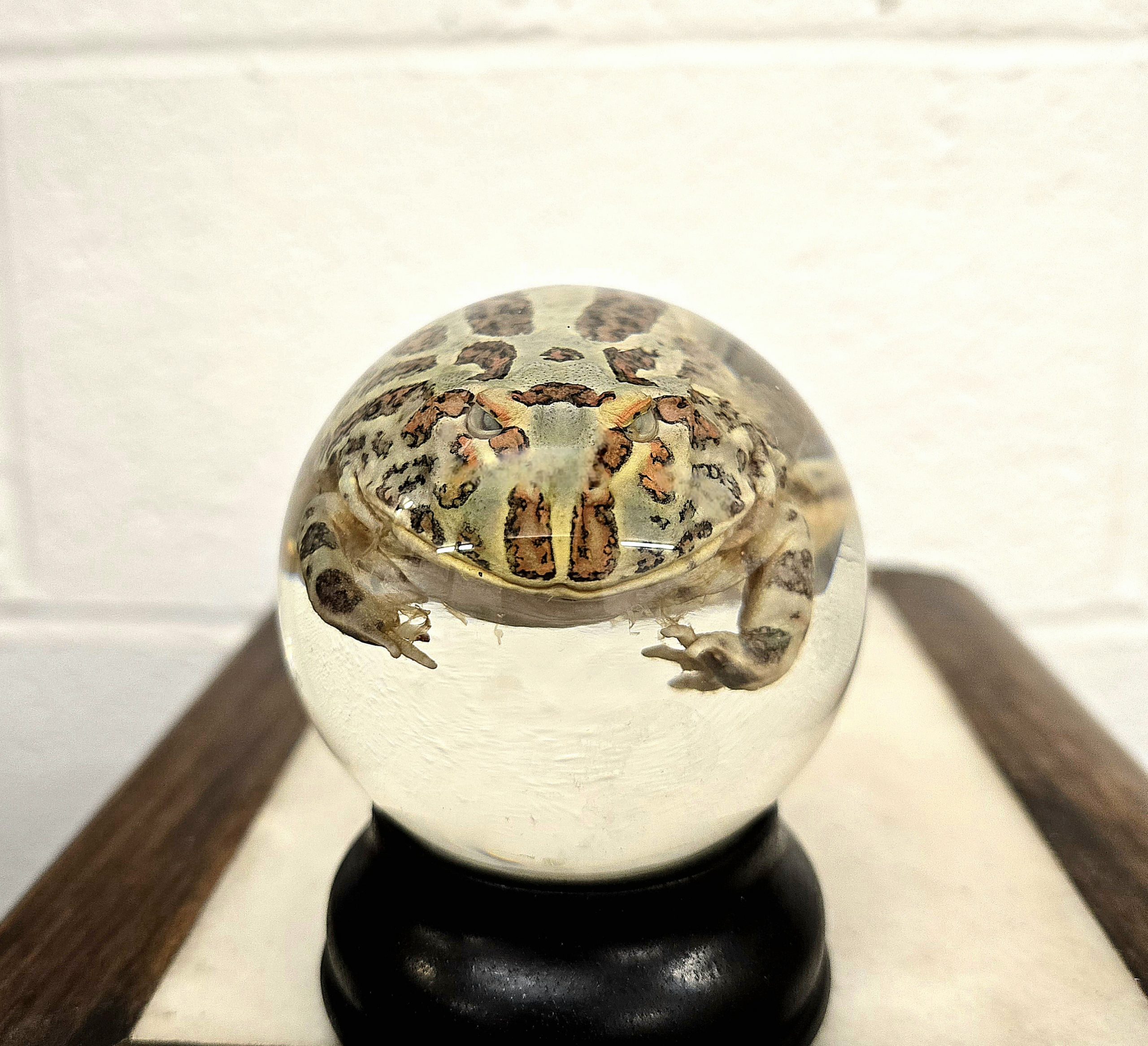 The specimen is articulated within a 100mm Glass Globe in which it will ship with Full Alcohol, so no need to go purchase your own.