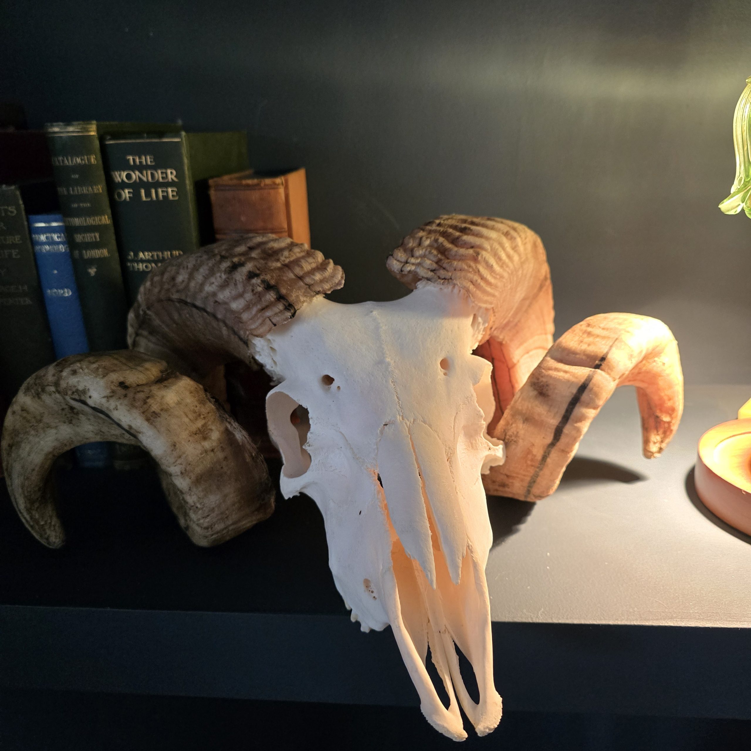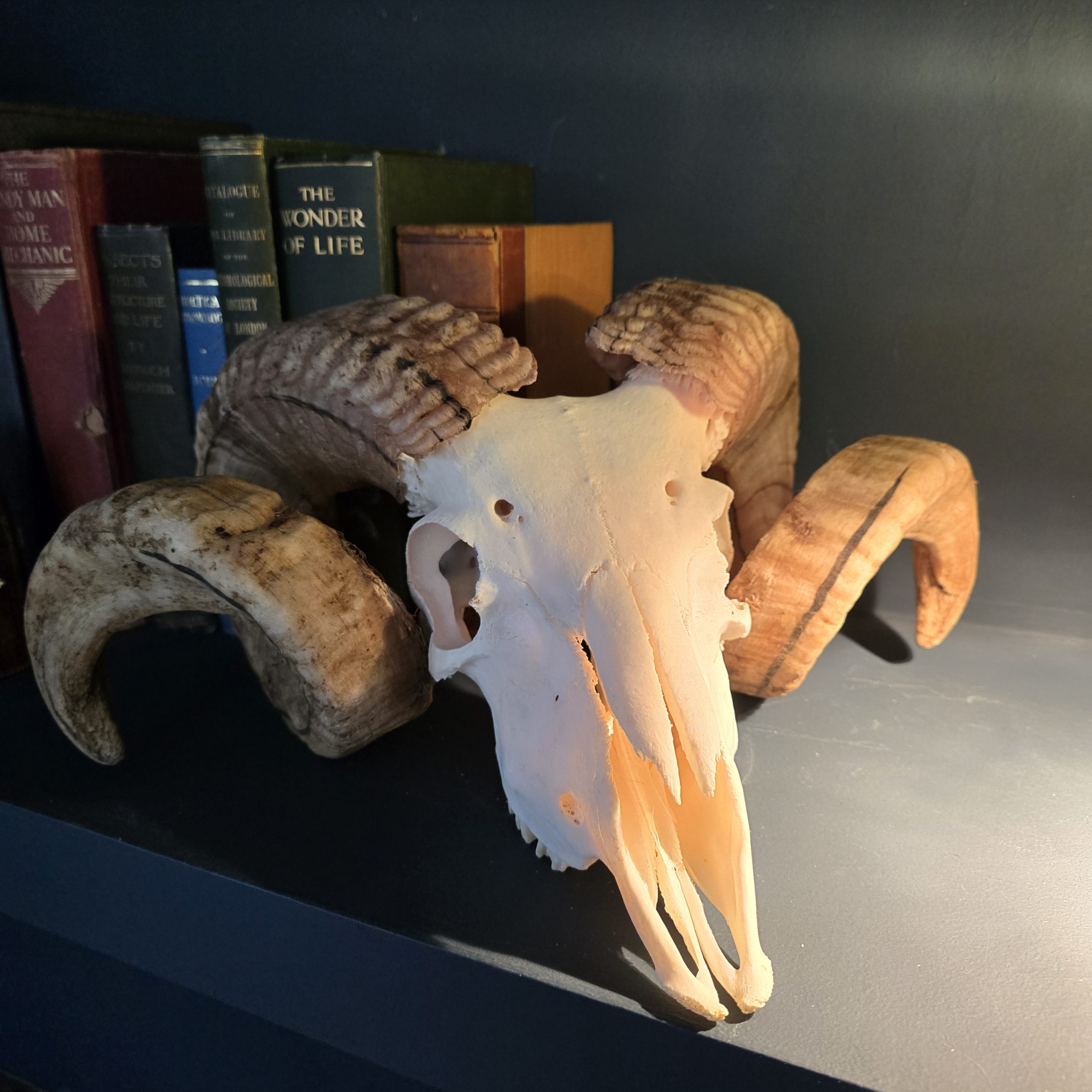 Here you see a Mouflon Ram skull, ethically sourced and possessing a large pair of rich dark horns. Perfect for any free standing surface supplied unmounted to allow you the flexibility to choose best placement for this impressive specimen.